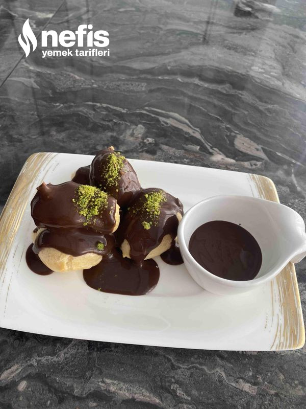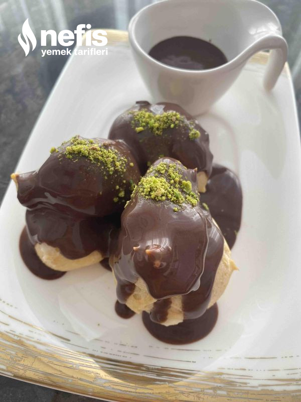 - Hazırladığın dolgulu profiterollerin üstüne çikolata sosunu gezdirip servis yapabilirsiniz.
