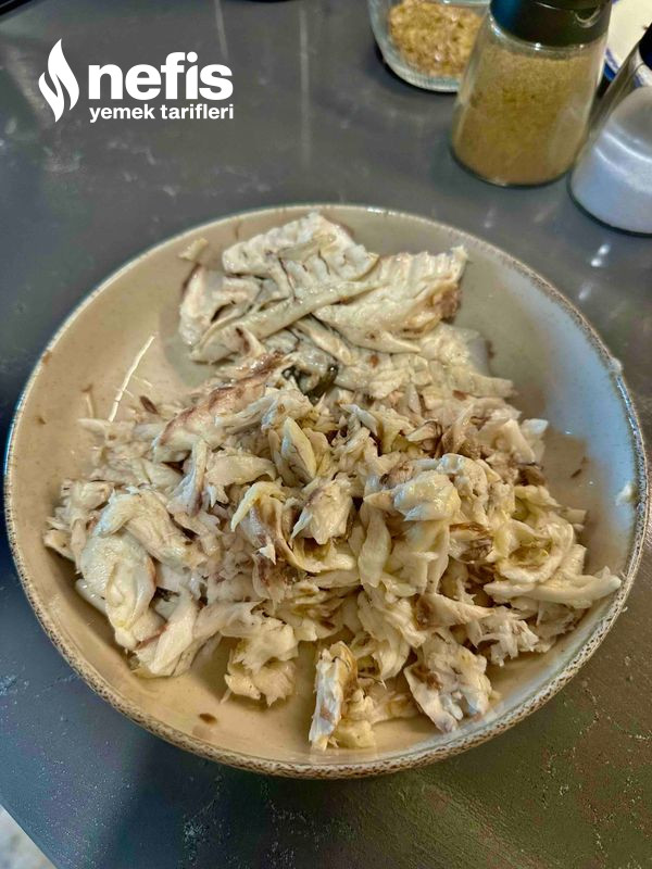 6. Fırında pişen balıkları, kılçıklarından ayırıyor ve tiftikliyoruz.