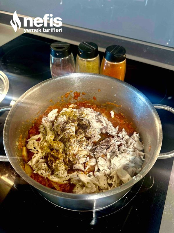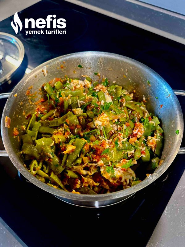 7. Tiftiklenen balıkları ve fasulyeleri de ekleyerek 2-3 dakika daha pişiriyor lakin çok da karıştırmıyoruz.