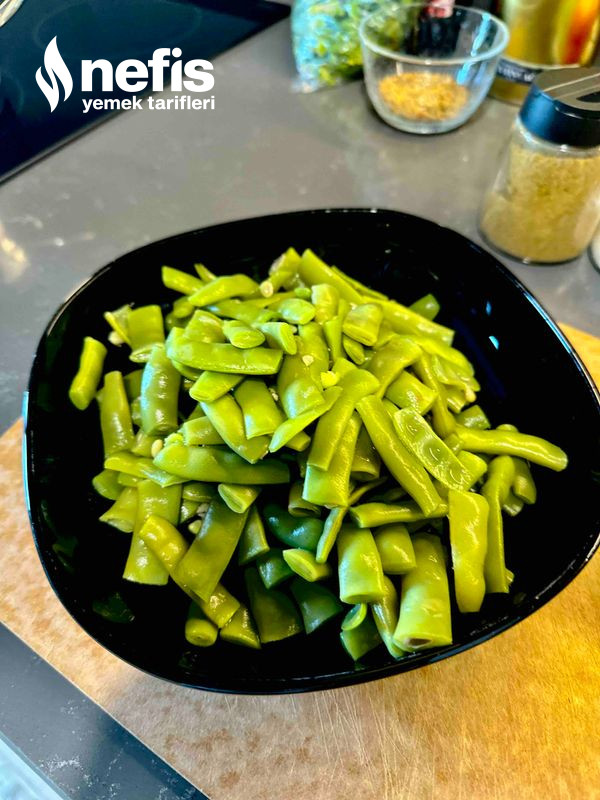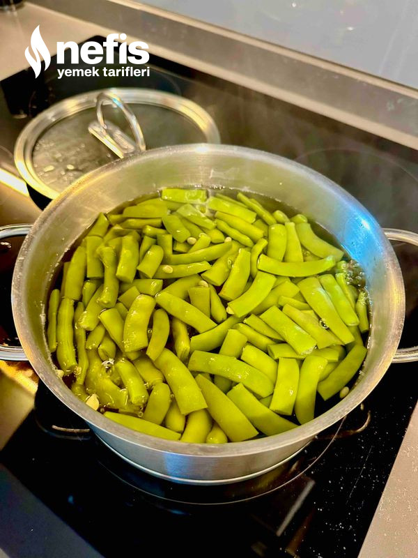 3. Önceden kaynamış tuzlu suda, fasulyelerimizi yalnızca 10 dakika haşlıyor ve sonrasında da buzlu suya alarak pişmeyi durduruyoruz.