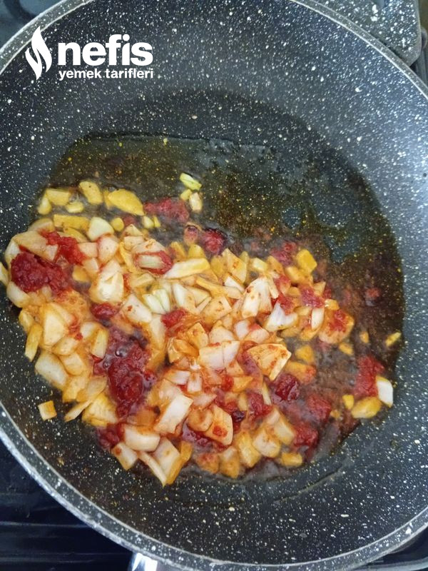 3. Sonra soğanı ince kıyıp yağda kavurun ve salçasını ekleyin. ⚘️