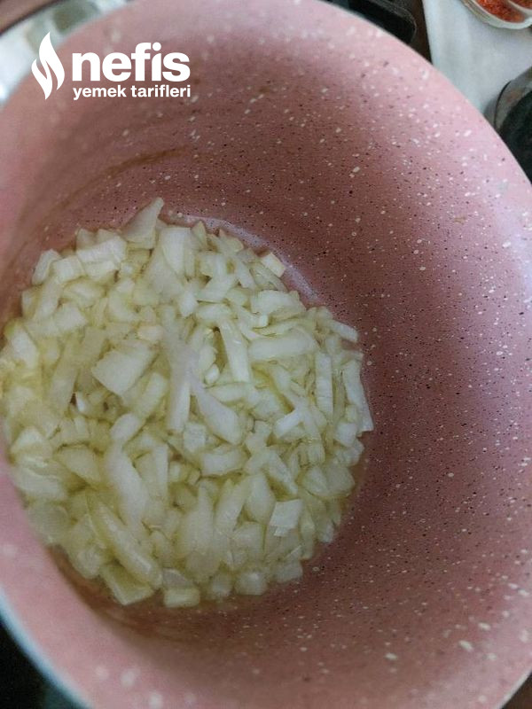 2. Zeytinyağında soğanı kavurup üzerine domatesi dökelim (taze domates de olur. )