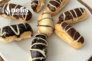 - Daha sonra hazırladığımız kremayı tekrar bir sıkma torbasıyla içine doldurup üzerlerini benmari yöntemi eritilmiş çikolatayı bulayıp servis edelim yiyen ve deneyenlere afiyet olsun.