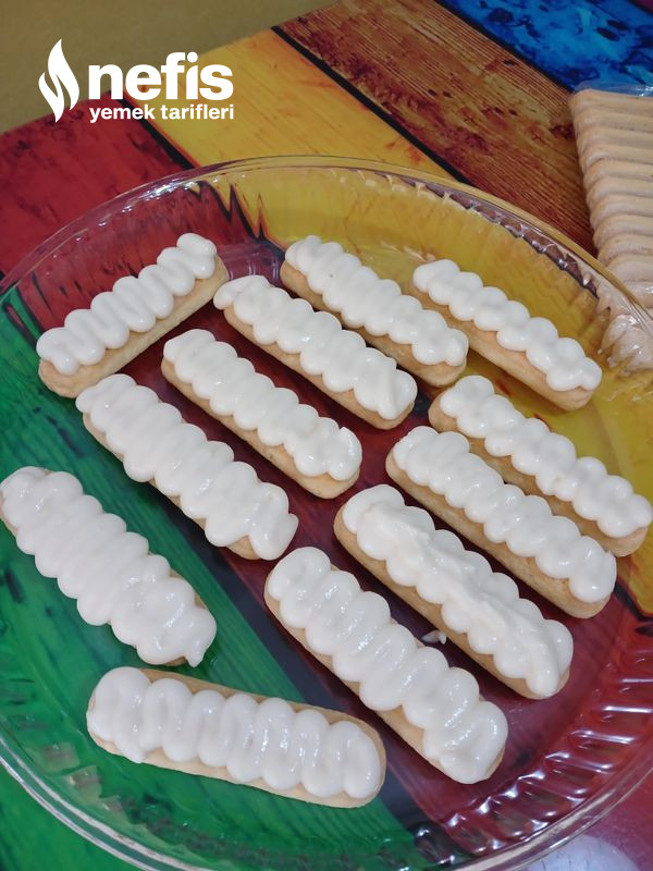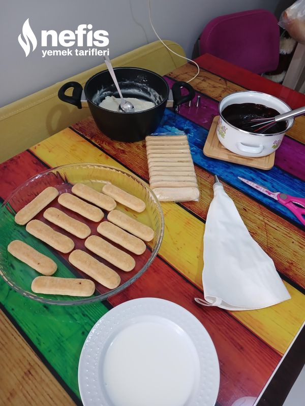 - Kedidillerinin yarısını süte batırarak uygun bir tabağa dizelim.