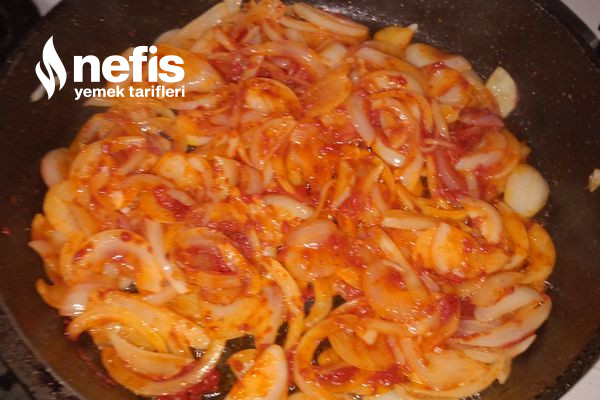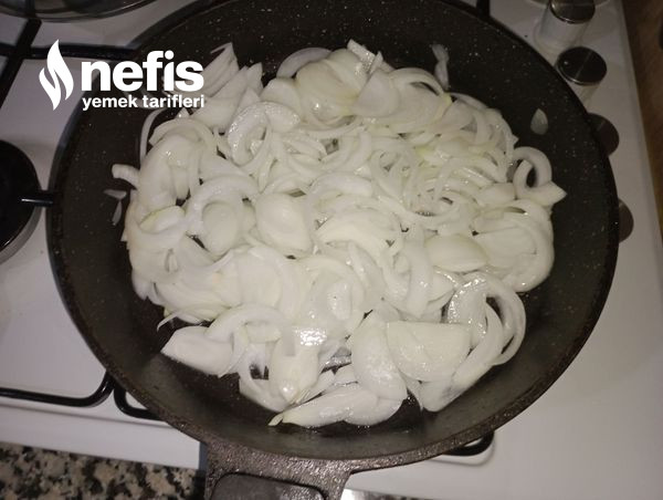 - Sonra soğanları soyun dik dik doğrayın ,sonra tavaya yağı alın, üstüne soğanları atın, biraz kavurun.