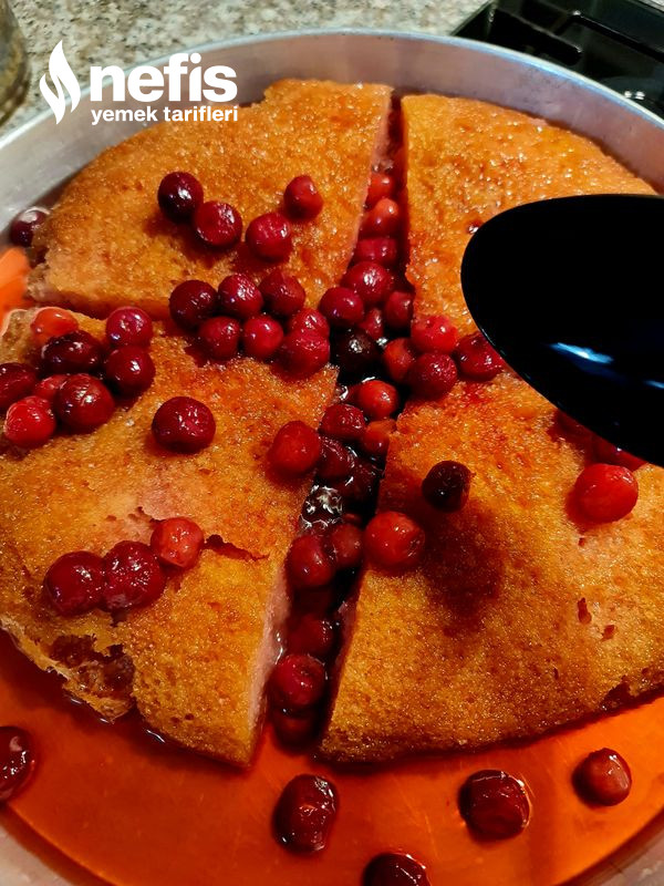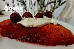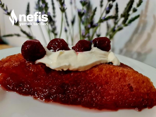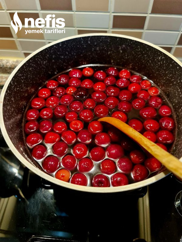 - Öncelikle şerbet hazırlanır. 4 su bardağı şeker, limon tuzu ve 1 litre su ocağa alınır. Şerbet kaynayınca vişneler eklenir. Kuru ekmek kadayıfı 1 litre su ile ortada çevrilerek ıslatılır.