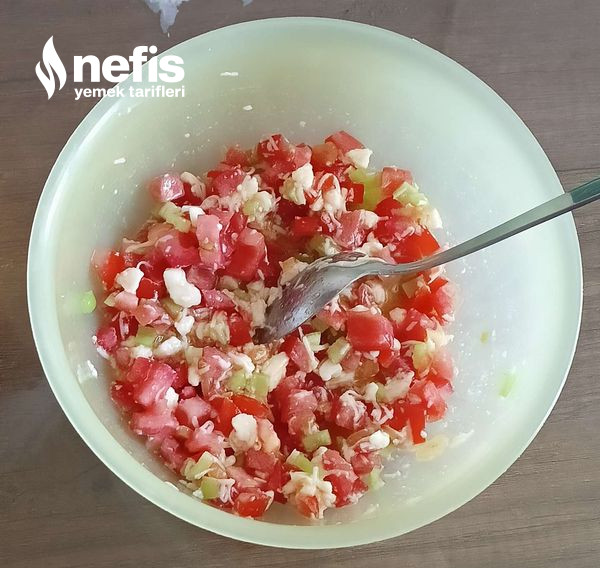 - Not;İsteğe bağlı acı sivri biberde koyulabilir ve gereçler kişi sayısına nazaran çoğaltılabilir.ben buraya beyaz ekmek yazdım fakat istediğiniz ekmeği de kullanabilirsiniz çavdarlı tam buğday fark etmez hatta ramazan ayında kalan pidelerinizi bile kullanabilirsiniz öylede çok lezzetli oluyor.