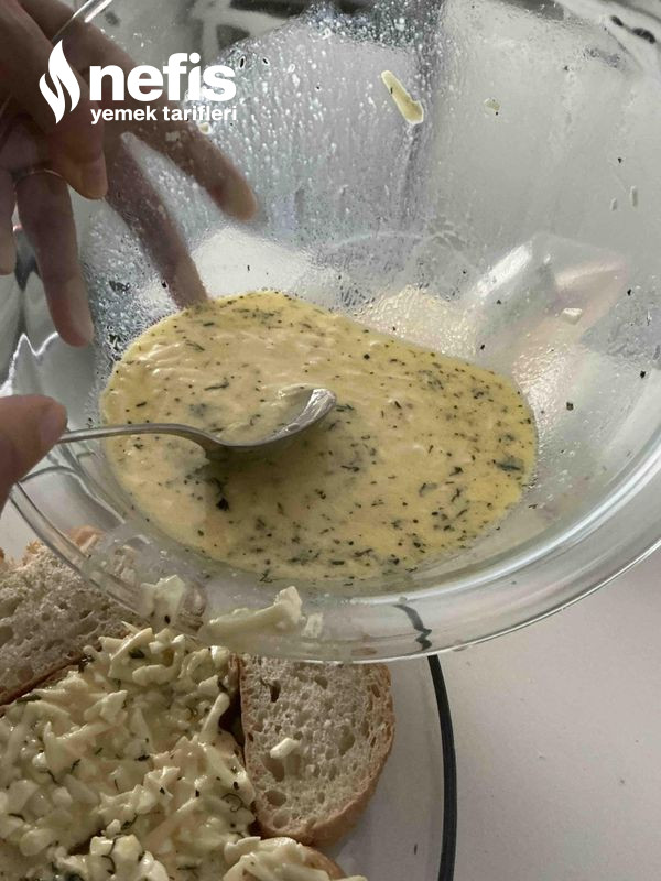 - Yumurta,beyaz peynir,süt,rendelenmiş kaşar,tuz,nane,maydanoz yada dereotu bir kasede karıştırın.