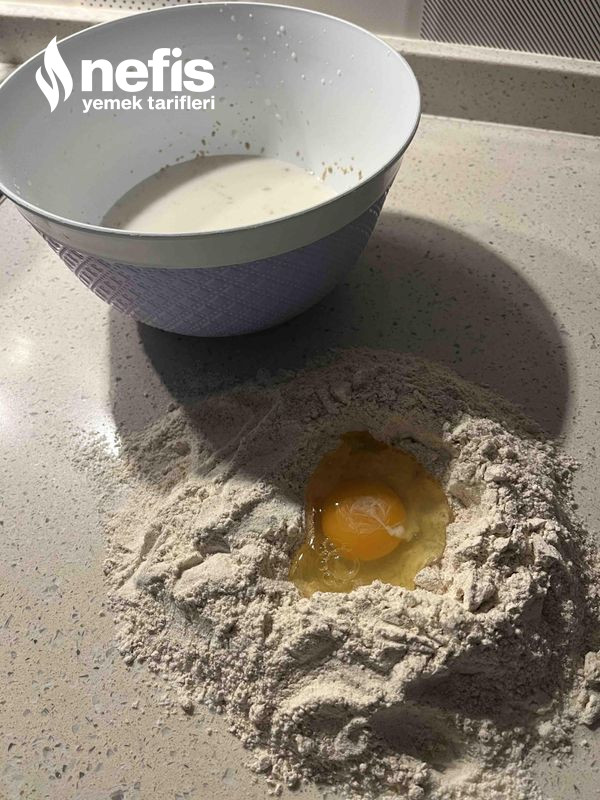 2. Sonradan yumurta ve unu yoğurmaya başlayıp sütlü karışıma ek edin.