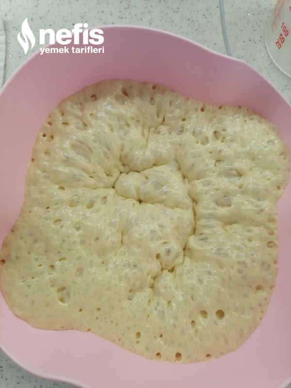 - Hamuru sağlı sollu ortaya katayalım ve tekrar iki katı halini alana kadar mayalanmaya bırakalım.