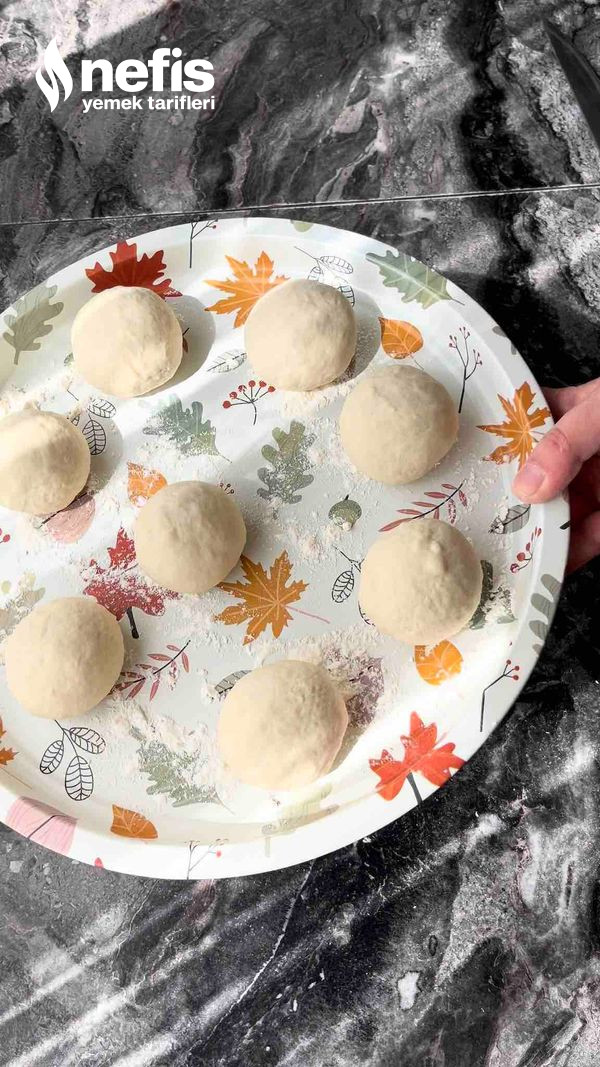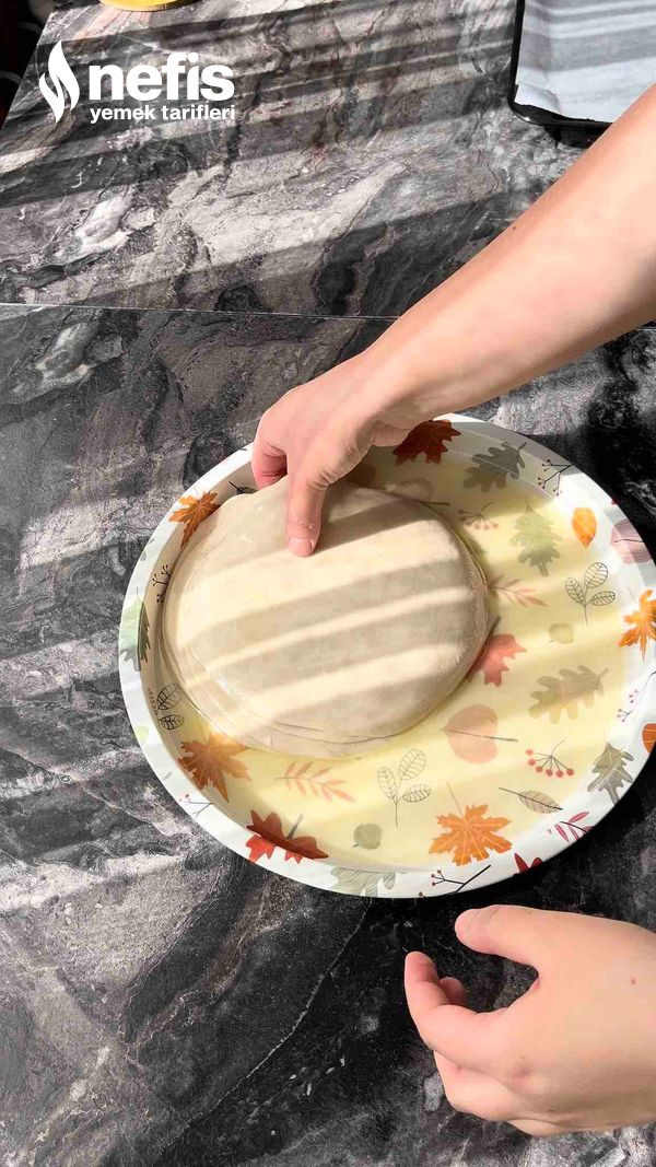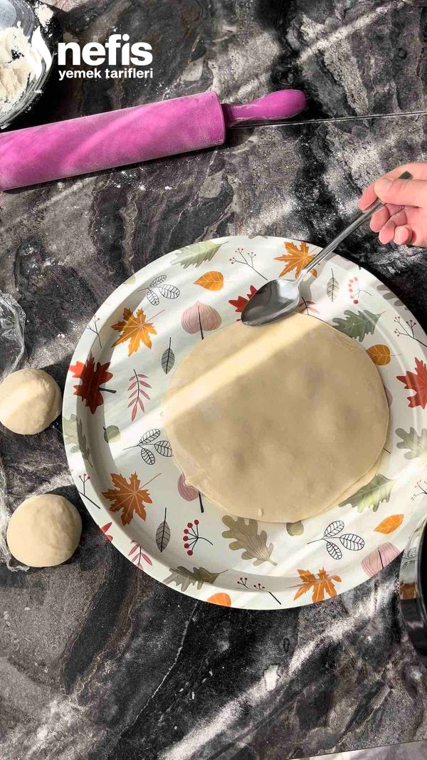 11. Dinlenen hamurları merdane ile pasta tabağı büyüklüğünde açalım ortalarına yağ sürelim üst üste yerleştirip yarım saat dinlendirelim.