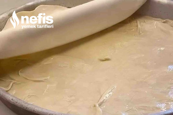 8. Tepsi boyutunda oklava yardımıyla bezeyi açıyoruz.