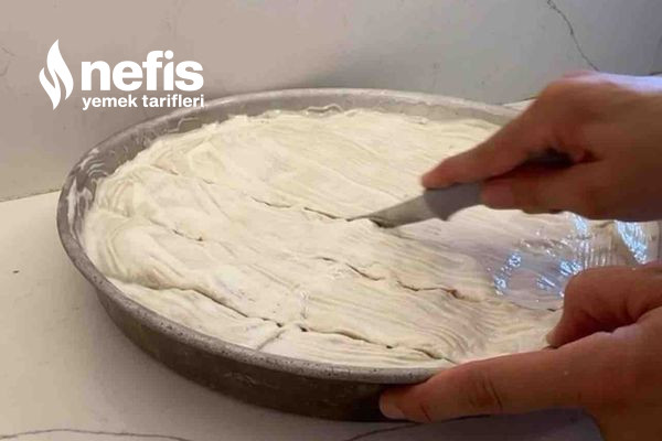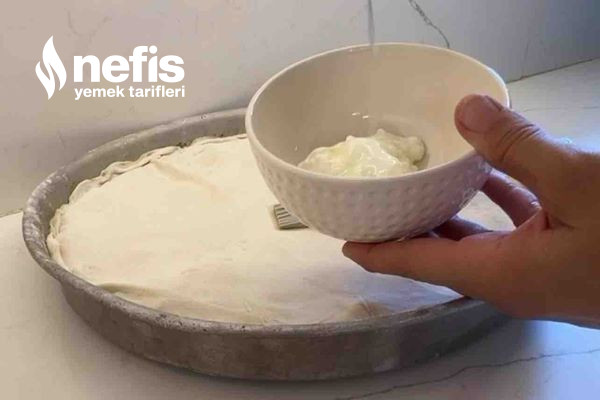 16. En üst kata yoğurt ve yağı karıştırıp sürüyoruz.