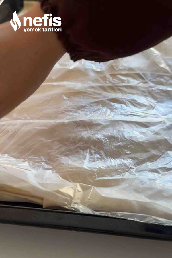- Bezeleri tek tek hazır yufka büyüklüğünde açalım üzerine eritilmiş tereyağını sürüp zarf formunda katlayalım hepsini açıp yağlayıp katladıktan sonra tepsiye koyup, üzerini poşet ile örtelim buzlukta 30 dakika bekletelim.