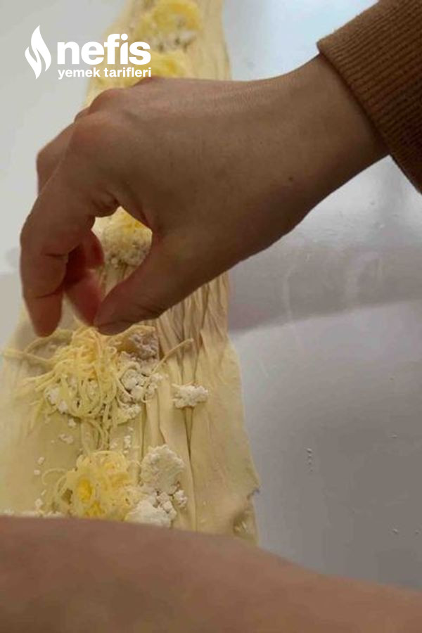 - Hamuru bezeler ayır yarım saat dinlendir. Peynirleri karıştır düzgünce ve kenara koy.