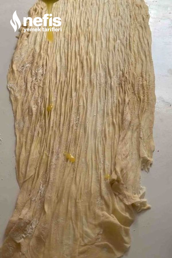 - Hamuru 8 eşit bezeye ayırın,üzerini bir poşet ile ört ve bir tane bezeyi alın, nişastaya bulayın ve ince bir hamur olana kadar açın.