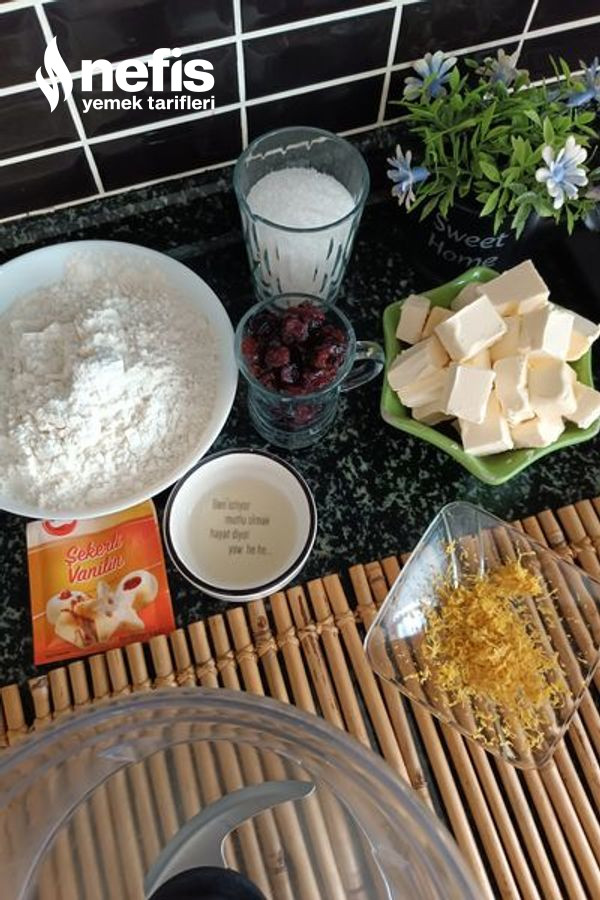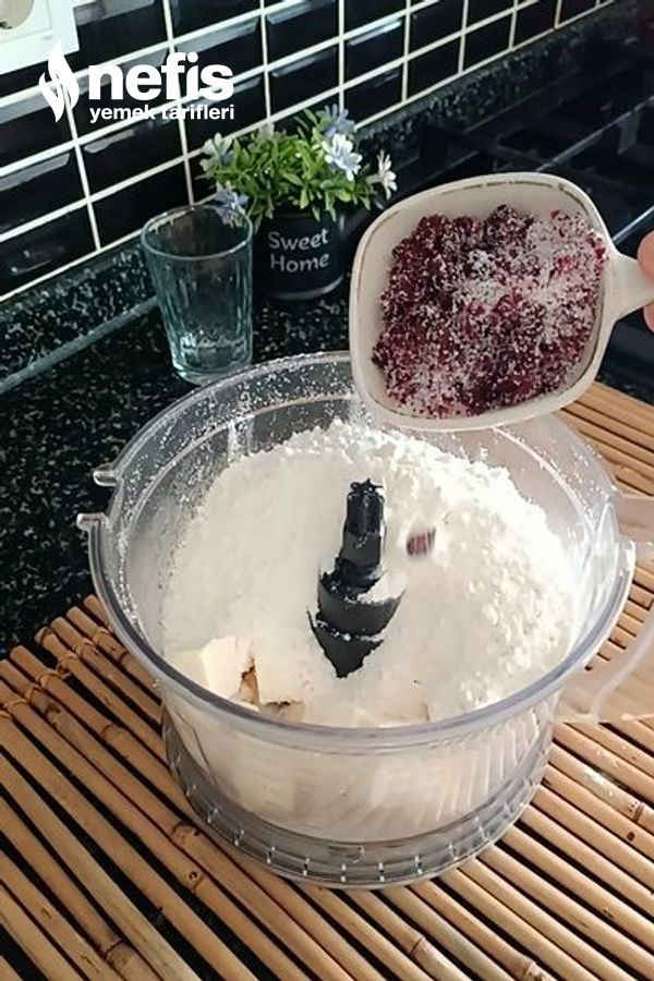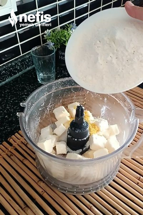 - Küp doğranmış soğuk margarini, şekeri, vanilini,limon suyunu, limon kabuğunu, tuzu, unu ve rondodan geçirdiğimiz turna yemişini rondodan geçirelim. Homojen bir karışım olup hamur toparlanınca streç sinemaya sarıp buzluğa kaldıralım.