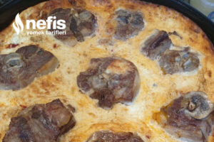 5. Haşlanan etlerinde üzerine sıralayıp, evvelden açtığımız fırında yaklaşık 180-200 derecede üzeri güzelce kızarıp yoğurtlu karışım hafif kendini çekene kadar kızartalım.