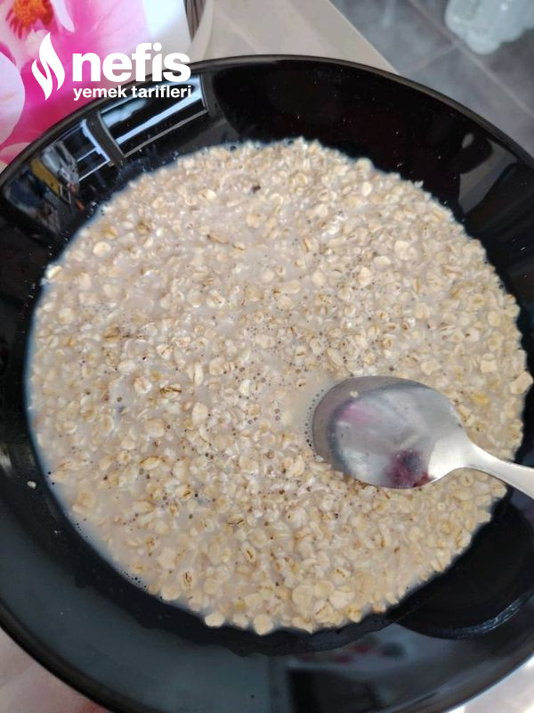 1. Yulafları bir uygun kaba alalım sütü ekleyelim karıştırıp 10 dk dinlenmeye alalım.