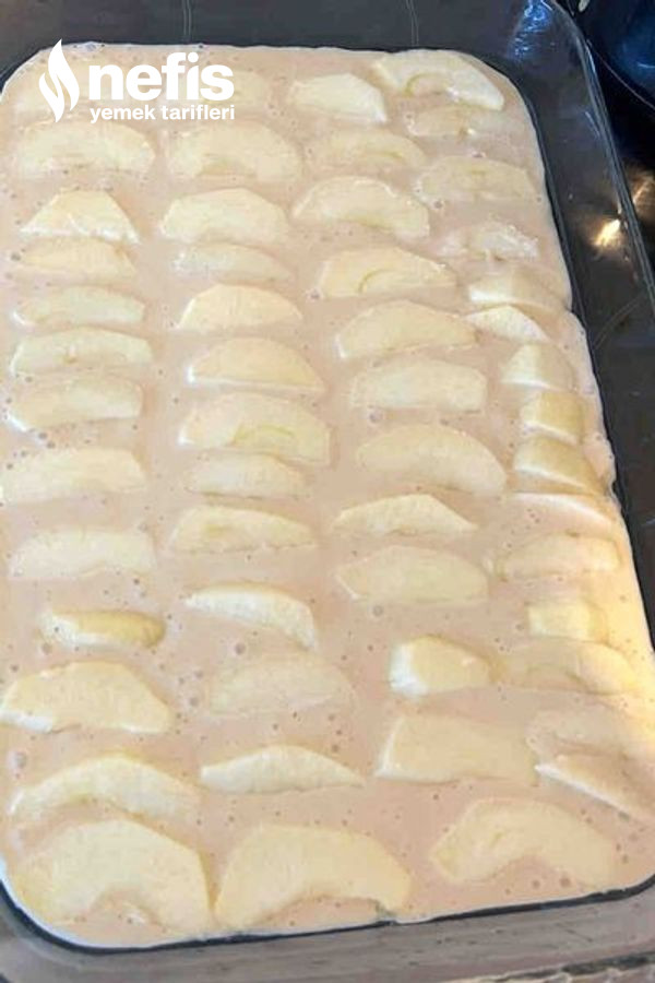 - Üzeri için elmaları soyup dilimleyelim ve harcın üzerine dizelim.