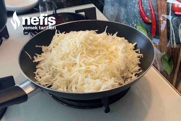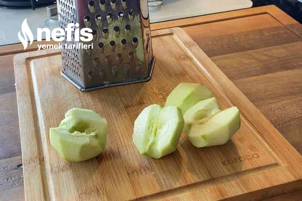 4. Elmanın kabuklarını soyup rendeleyelim, fazla suyunu sıkalım.