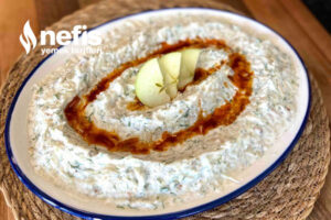5. Uygun bir karıştırma kabına yoğurt, mayonez, sarımsak, kıyılmış dereotu ekleyip karıştıralarım.