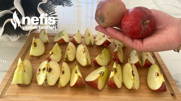 - Elmaları dilimleyelim ve küpler halinde doğrayalım blenderdan geçirelim materyalleri karıştıralım çok akışkan olmayan kıvam elde edelim.