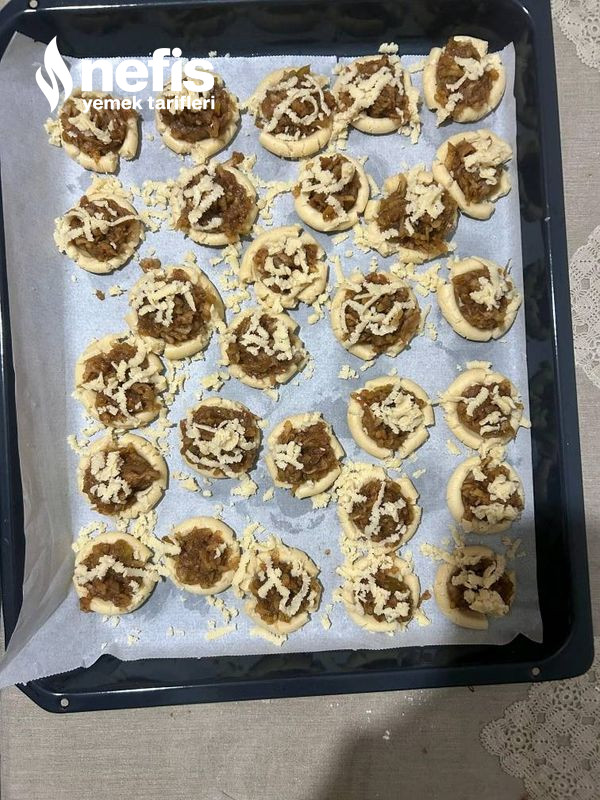 - Küçük toplar halinde yuvarlayalım ve yağladığımız fırın tepsisine dizelim, bir çay bardağının aykırısı ile ortasına bastıralım hazırladığımız elmalarımızı koyalım.