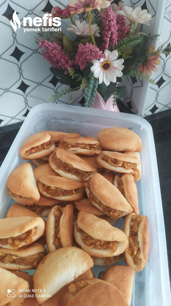 Not:Sirke kurabiyeyi kıyır yapıyor. Hamuru fazla yoğurmadan toparlamak gerekiyor, yoksa sertleşir. İç harcı güzelce soğutulmalı, yoksa hamuru ıslatır. Bu kurabiye 2-3 gün boyunca bayatlamadan birebir tazelikte kalıyor.