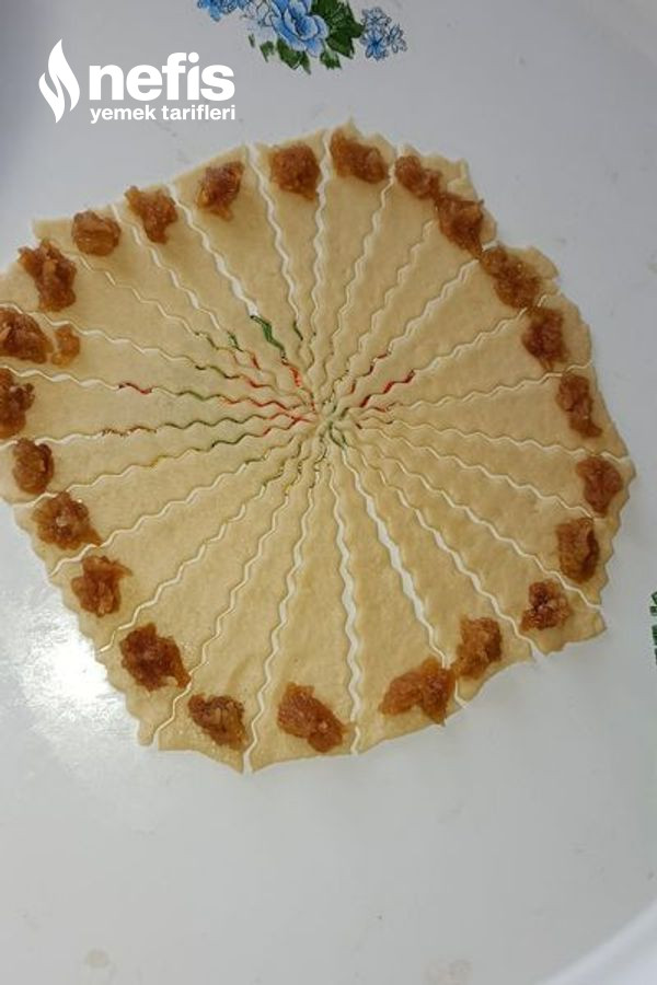 8. Küçük kesimlere bölerek kruvasan üzere iç materyali koyarak saralım.