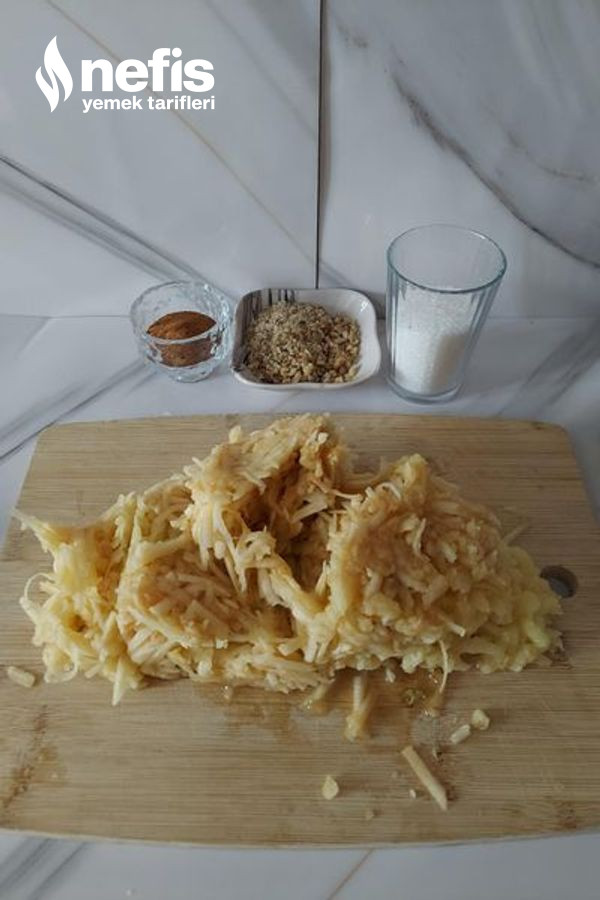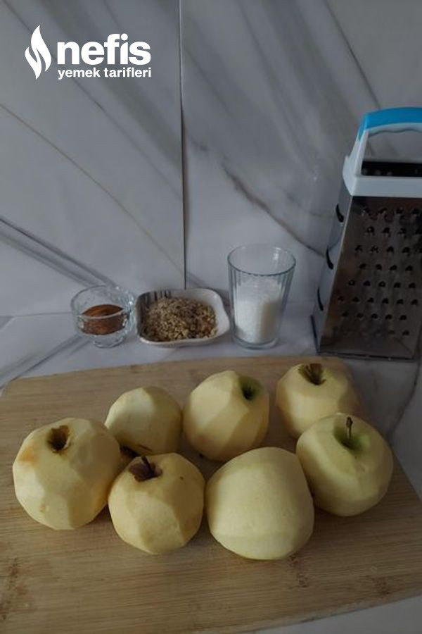 1. Elmalı iç harcı için; elmaları soyarak, rendenin iri tarafı ile rendeleyelim.