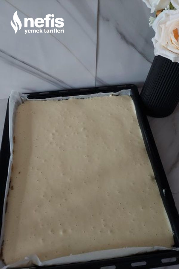 8. Elmalı harcın üzerine de kek harcımızı yayalım.
