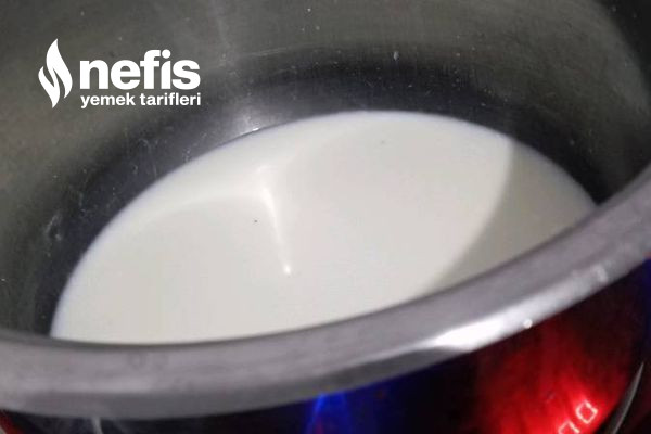 - Süt soğuk olacak biçimde yarım su bardağı suyu, nişasta, şeker ve pudra şekerini koyalım.