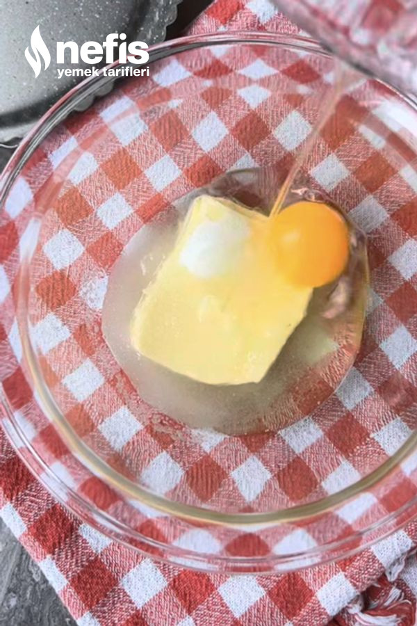 4. Tart hamuru için: bir kapta yumurta, tereyağı, şekeri düzgünce elimizle karıştıralım.