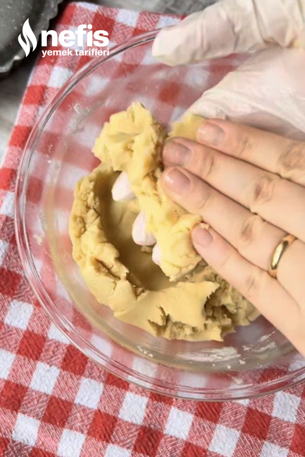 6. Hamurdan biraz ayıralım üzerine rendelemek için bu hamuru dolaba koyalım.