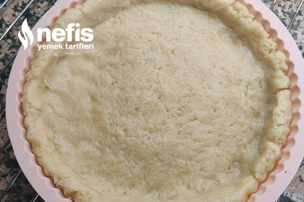 - Hamurun üçte birini üzeri için ayıralım. Kalan hamuru merdane ile açalım ve kalıbın tabanına yerleştirip kenarlarını yavaşça yükseltelim.
