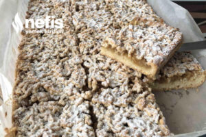 - Çatalla delikler açalım âlâ pişsin diye üzerine elma harcı dökün yayın, elmalın üstüne kalan hamuru rendeyle rendeleyelim yahut dilerseniz merdaneyle açıp kesip şeritler halinde biçimde yapabilirsiniz.