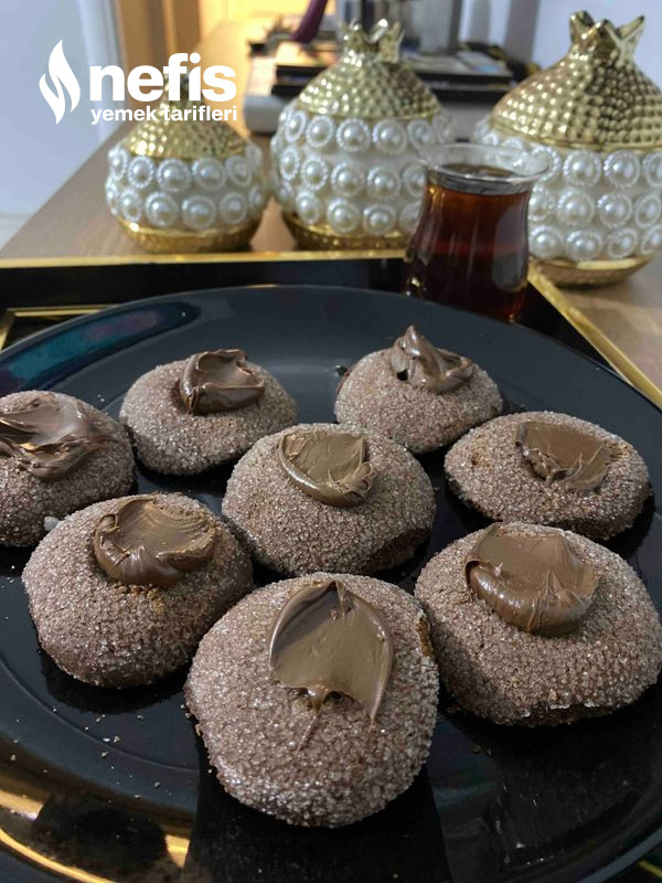 - 180 derece öncede ısıtılmış fırında 20 dk kadar pişiriyoruz. Pişen soğuyan kurabiyelerimize ortasını oyduğumuz kısma nutella sürüyoruz.