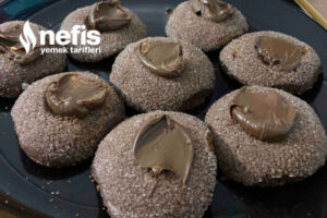 - 180 derece öncede ısıtılmış fırında 20 dk kadar pişiriyoruz. Pişen soğuyan kurabiyelerimize ortasını oyduğumuz kısma nutella sürüyoruz.