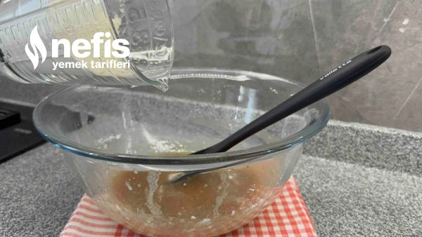 - Son olarak unu ekleyip spatula ile karıştıralım.