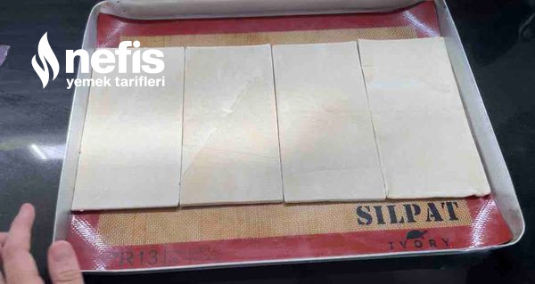 - Milföyler için; bir tepsiye milföy hamurlarımızı dizelim donuk biçimde. Üzerine öbür bir tepsi örterek bastıralım ki pişerken kabarmasın.