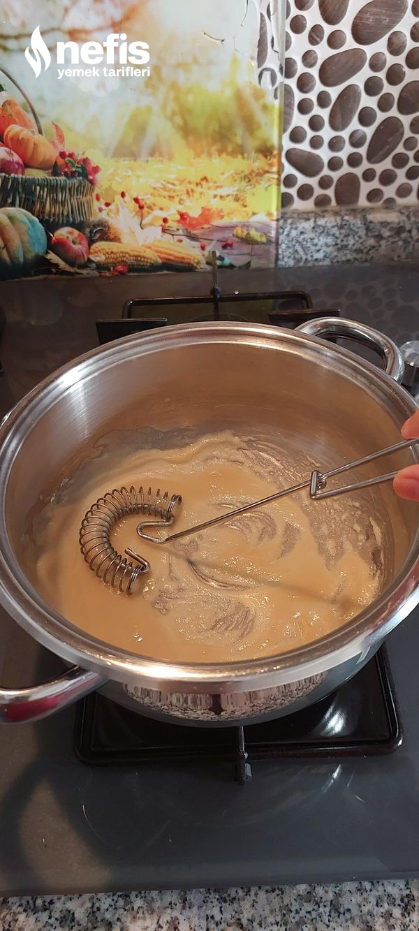 - Tencereye tereyağı ve sıvı yağ ekleyip eritiyoruz ,ardından 2 tepeleme kaşık un ekleyip kokusu çıkana kadar kavuruyoruz daima karıştırın topaklanmasın.