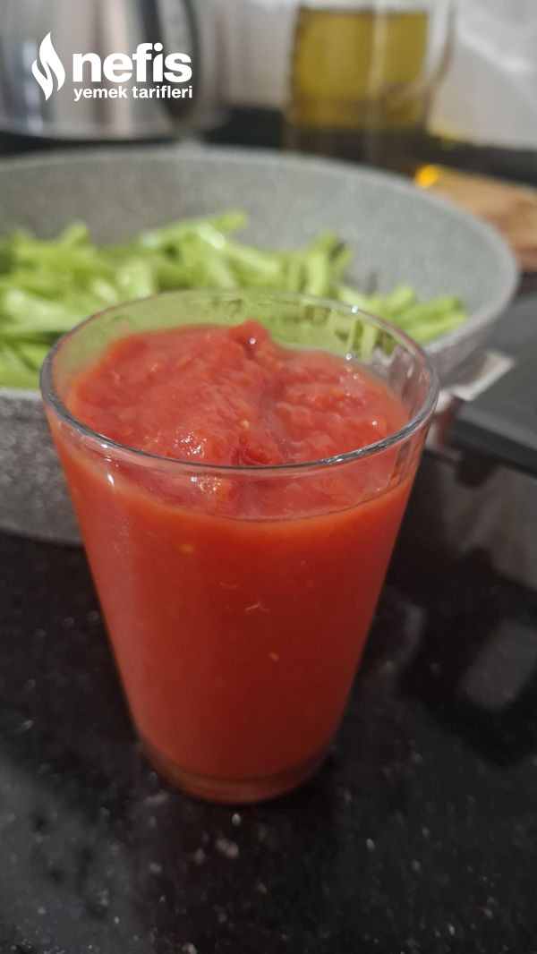 - Üzerine; yarım çay bardağı sıvı yağını, 1 su bardağı domates sosunu, 1,5 su bardağı sıcak suyu, 2 çay kaşığı tuz, 2 diş sarımsağı minik minik doğrayıp ekliyoruz.
