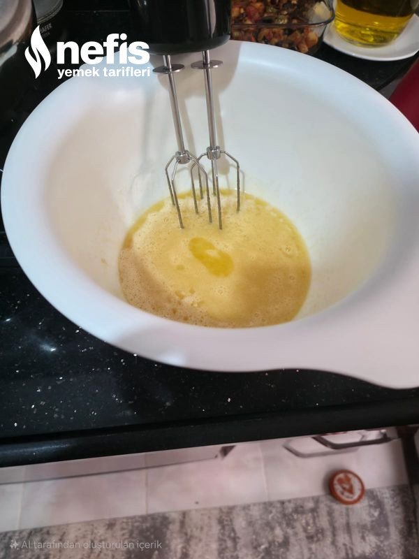 1. 2 yumurta ve şekeri mikser yardımıyla şeker eriyene kadar çırpalım.