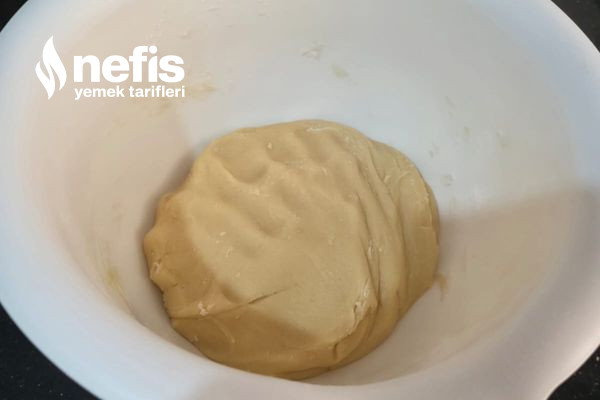 6. Yoğurma esnasında hamurumuz elimize yapışmayıncaya kadar birer yemek kaşığı un ekleyelim. (ben 3 yemek kaşığı koydum)