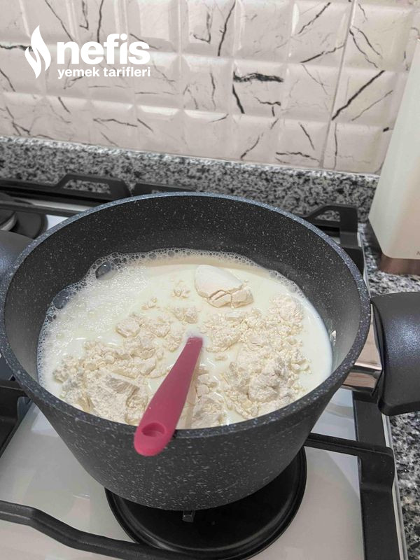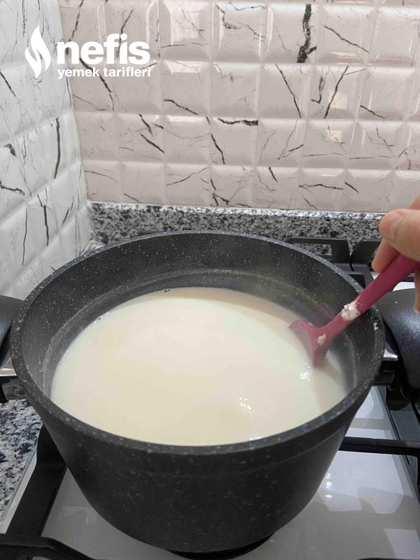 2. İçine muhallebi için hazırladığımız materyalleri güzelce koyalım ,kısık ateşte kaynayıp fokurdayana kadar karıştıralım.