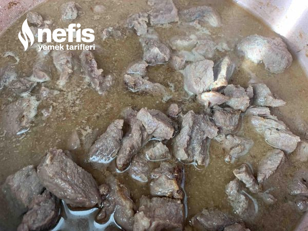 - Etlerin üzerini geçecek kadar sıcak su ekleyip ağzı açık bir halde orta ateşte pişirelim.