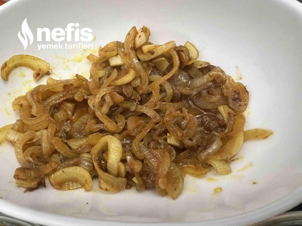 - Etler kızardıktan sonra tıpkı tavada ince ince doğranmış soğan ve sarımsak karamelize edilir.