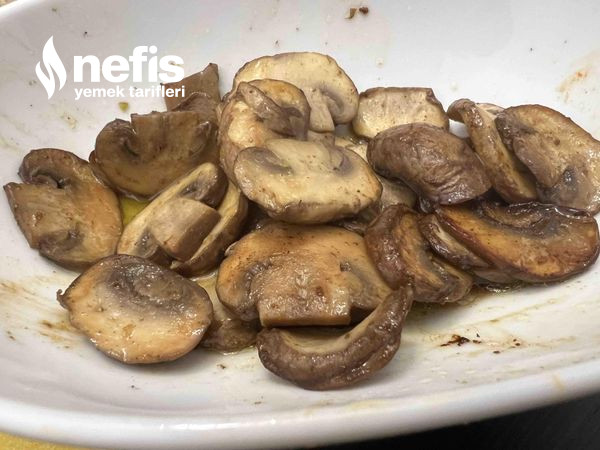 - İnce ince doğranmış mantarlar tavaya alınır ,az tuz ve tereyağı eklenir güzelce pişirilir.
