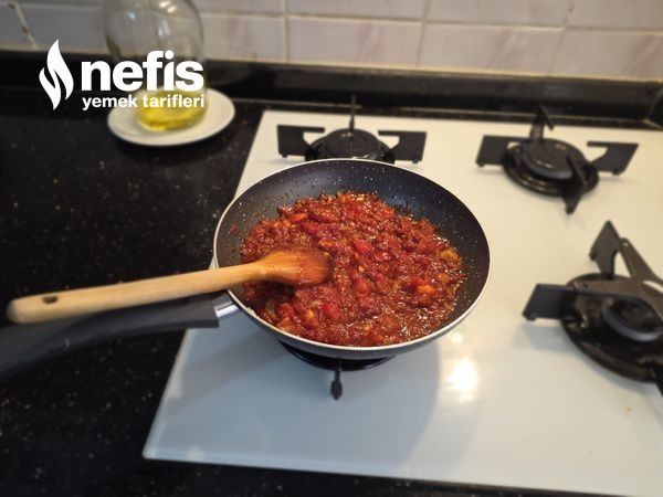 - Salçalarımızı ek edip üzerine biraz su ekleyerek salçalarımızı kavurarak rengini açalım.